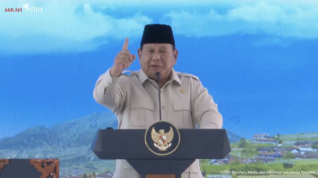 Foto: Presiden Prabowo Subianto dalam peluncuran Kelembagaan 80.000 Koperasi Desa/Kelurahan Merah Putih, Senin (21/7/2025). (Tangkapan Layar Youtube Sekretariat Presiden)
