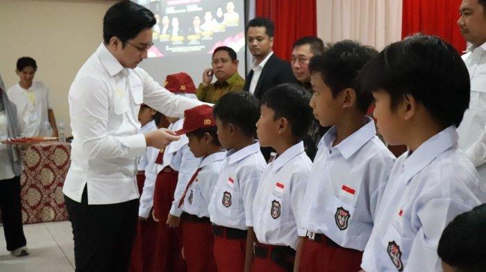 Irfani Hanif bagikan Seragam Sekolah ke Anak SD di Hotel Pangeran Khar, Minggu (22/6/2025).