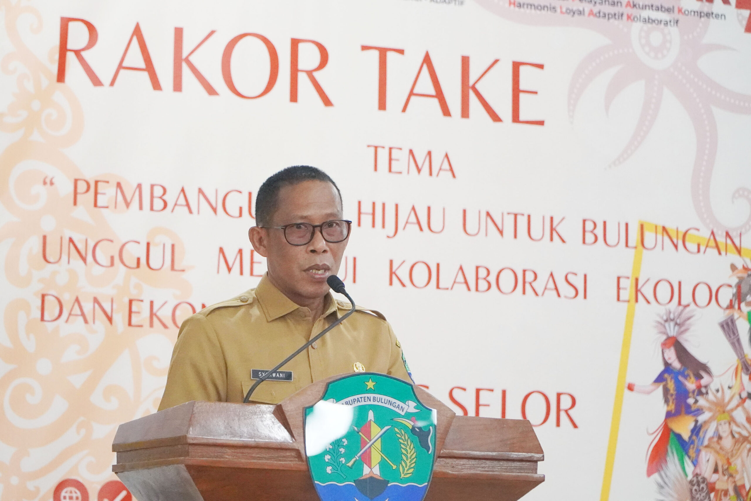 Bupati Bulungan Syarwani, S.Pd., M.Si saat membuka Rakor TAKE di Tanjung Selor (22/7)