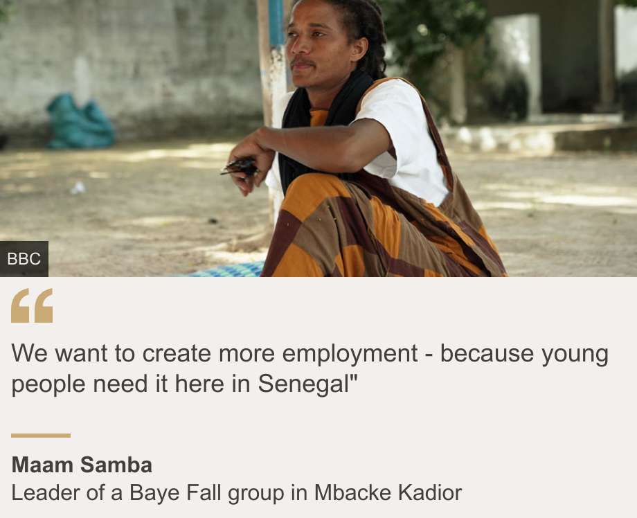 “Filosofi komunitas Baye Fall berpusat pada kerja,” ujar Maam Samba, seorang pemimpin kelompok Baye Fall di Mbacke Kadior, kepada BBC.