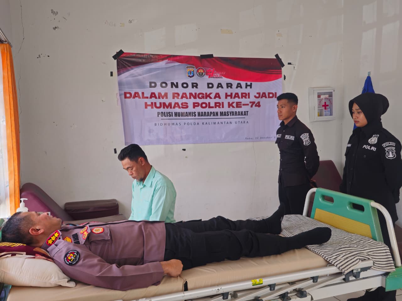 ​Kegiatan ini dilaksanakan pada Rabu, 22 Oktober 2025, bertempat di Kantor Palang Merah Indonesia (PMI) Kabupaten Bulungan. ​Kepala Bidang Humas Polda Kaltara Kombes Pol. Budi Rachmat, S.I.K., M.Si., memimpin langsung kegiatan tersebut. Kabid Humas bersama sejumlah personel Bidhumas turut serta mendonorkan darah mereka.